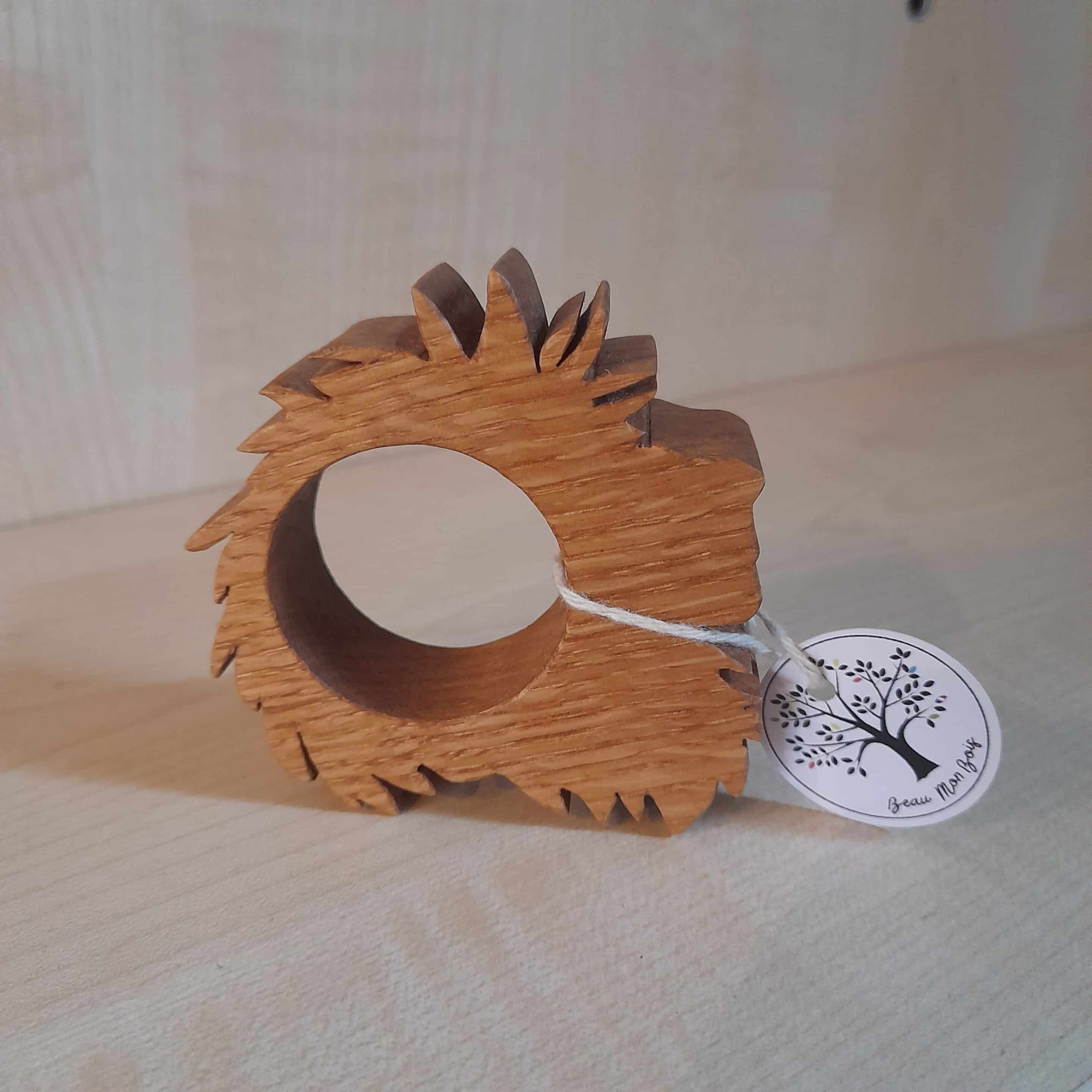 Jolis ronds de serviettes de table réalisés dans des chutes de bois à l'aide d'une scie à chantourner, travail artisanal.